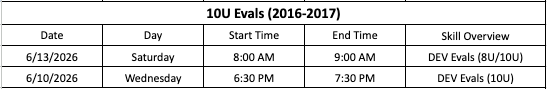 - Experienced coaching staff to execute tryouts, with direct communication to evaluating coaches