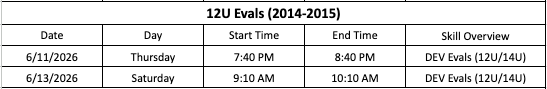 - Tier I Coaches will evaluate and release team rosters 5/5/2026